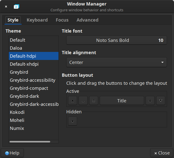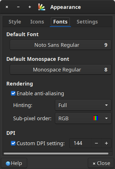 I've set my font DPI value to "144". 2) Settings > Window Manager > Window decoration font size